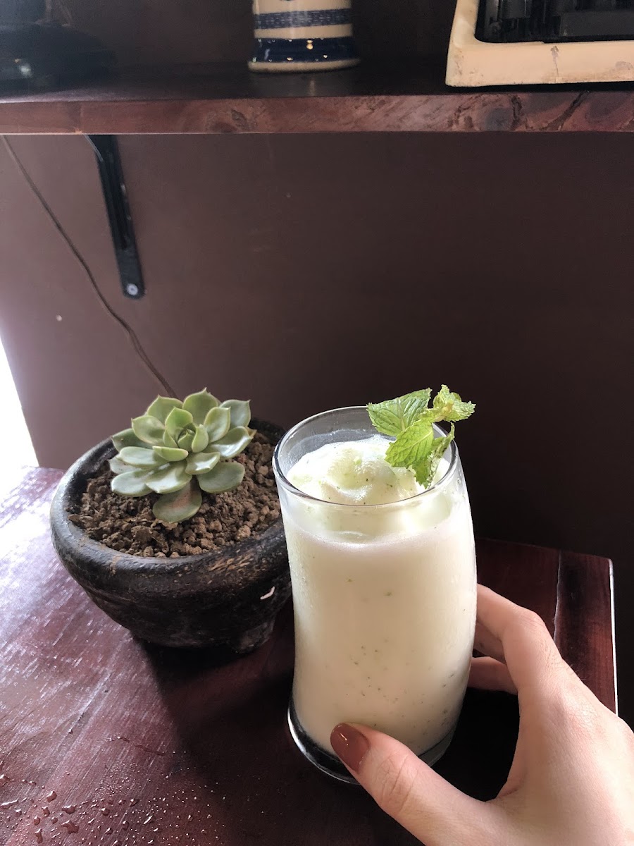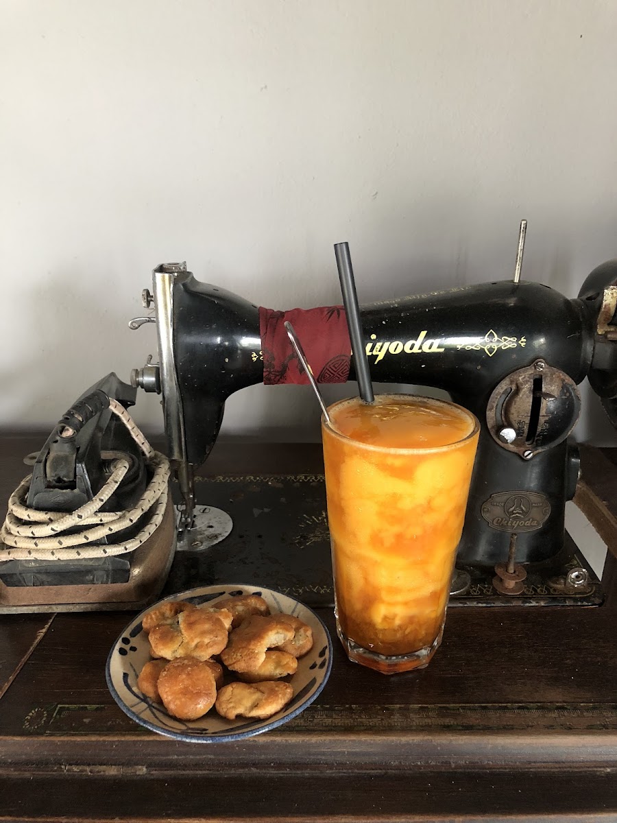 Step inside and be transported to a nostalgic realm filled with vintage decor that echoes the charm of times gone by. The ambiance is carefully crafted with a beautiful assortment of antiques, which include old fans, scales, and even a bicycle hanging at the entrance, creating an inviting and warm atmosphere. It’s a wonderful backdrop for enjoying an afternoon coffee or diving into a little work in peace.